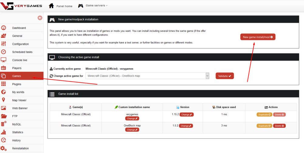 If you wish to install plugins on your server, go to the Plugins tab of your panel. If the offered plugins aren't enough for you, you can perfectly add the ones you like in the /games/unturned_rocket/Servers/VeryGames/Rocket/Plugins folder of your FTP. Most of the plugins are available on https://harbor.rocketmod.net/